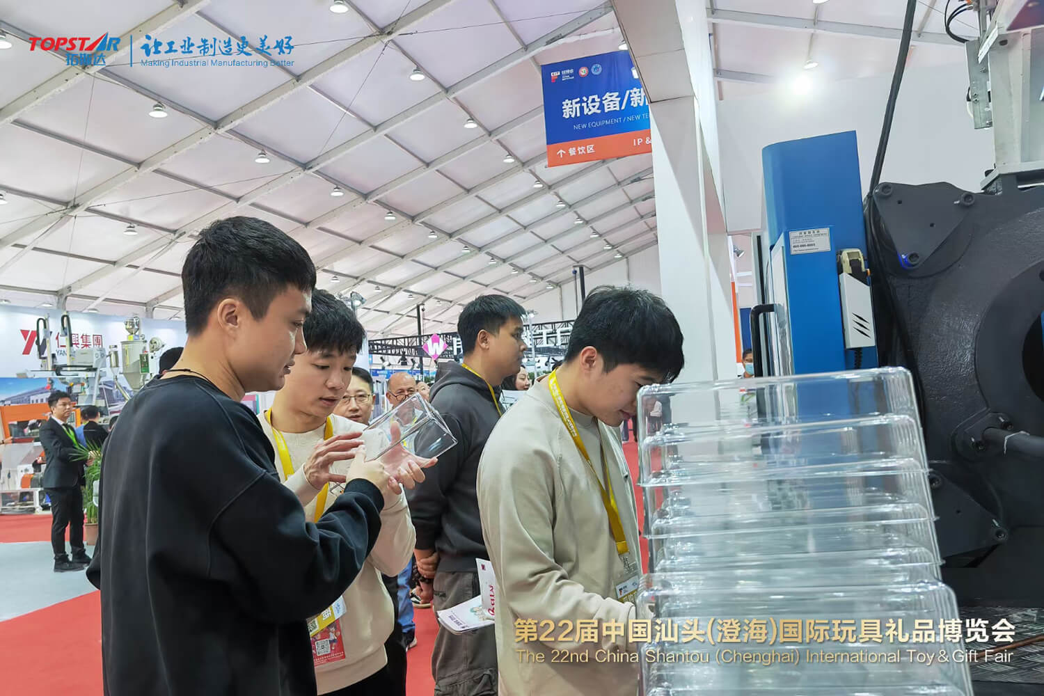 汕头玩博会现场,拓斯达TMⅡ系列与TEⅡ系列注塑机为广大客商展示深腔透明冰水盒注塑成型方案和玩具积木注塑成型方案,让在场客户近距离感受拓斯达注塑自动化应用。资深工程师也就生产经营管理者关注的产品解决方案进行了细致讲解。